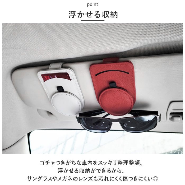 ・ゴチャつきがちな車内をスッキリ整理整頓。浮かせる収納ができるから、サングラスやメガネのレンズも汚れにくく傷つきにくい◎
