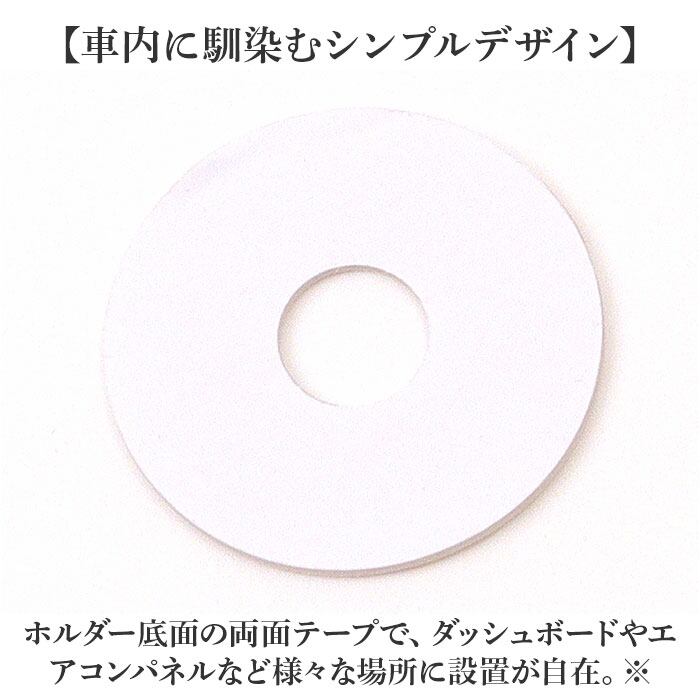 ・ホルダー底面の両面テープで、ダッシュボードやエアコンパネルなど様々な場所に設置が自在。