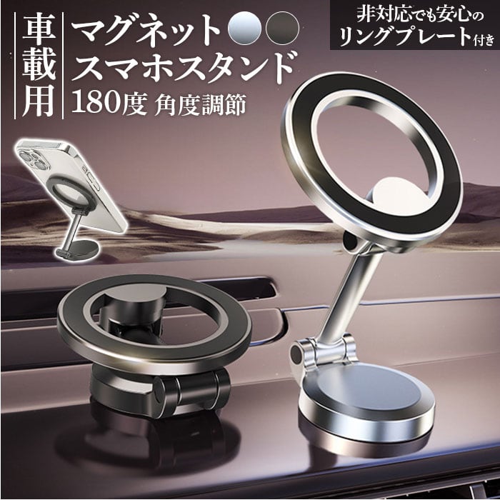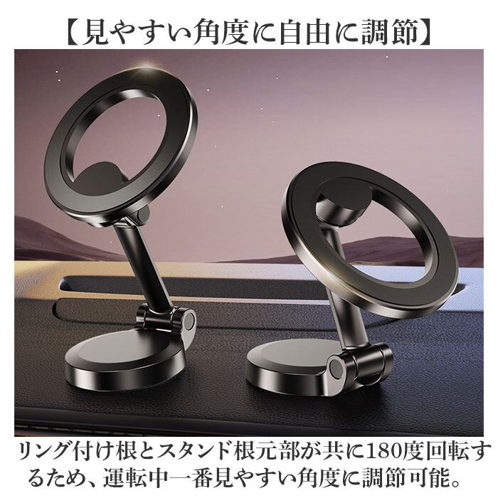 スマホホルダー車 通販 スマホスタンド 車載 車載ホルダー 携帯 スマートフォン ホルダー 車 携帯ホルダー マグネット 磁石 車用 車内 強力 固定 角度 回転 リングプレート 折りたたみ 両面テープ取付 ダッシュボード 簡単取付 すまほホルダー 自動車