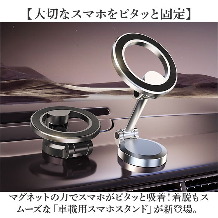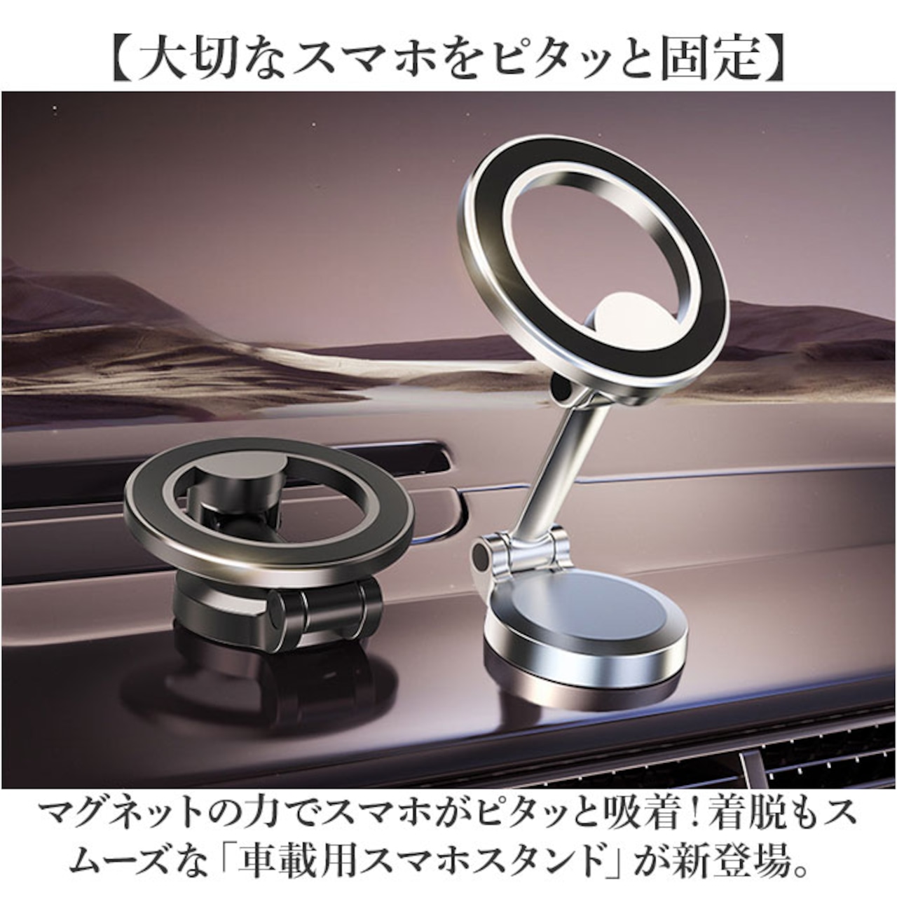 ・マグネットの力でスマホがピタッと吸着!着脱もスムーズな「車載用スマホスタンド」が新登場。