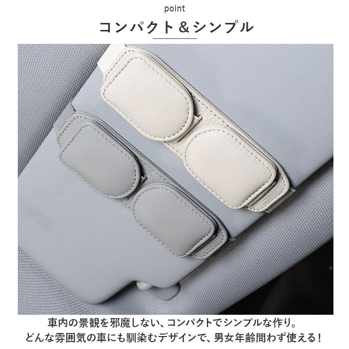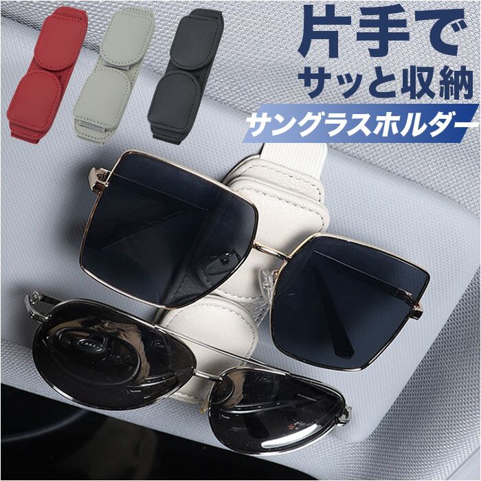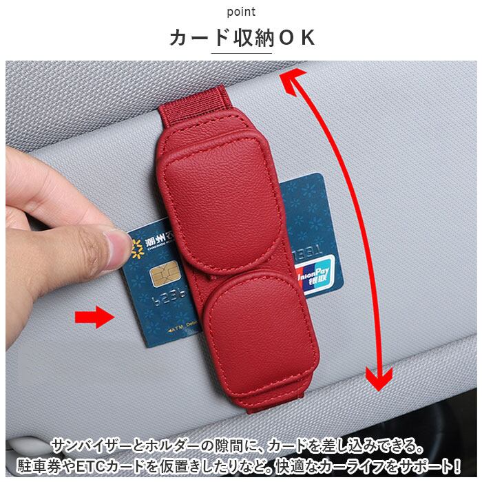 サングラスホルダー 通販 メガネクリップ メガネホルダー カードホルダー 眼鏡 サングラス ホルダー クリップ 車 車載 車用 サンバイザー 収納 マグネット 面ファスナー レザー コンパクト カード 駐車券 シンプル 取付簡単 カー用品