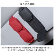 ・ゴチャつきがちな車内をスッキリ整理整頓。浮かせる収納ができるから、サングラスやメガネのレンズも汚れにくく傷つきにくい◎