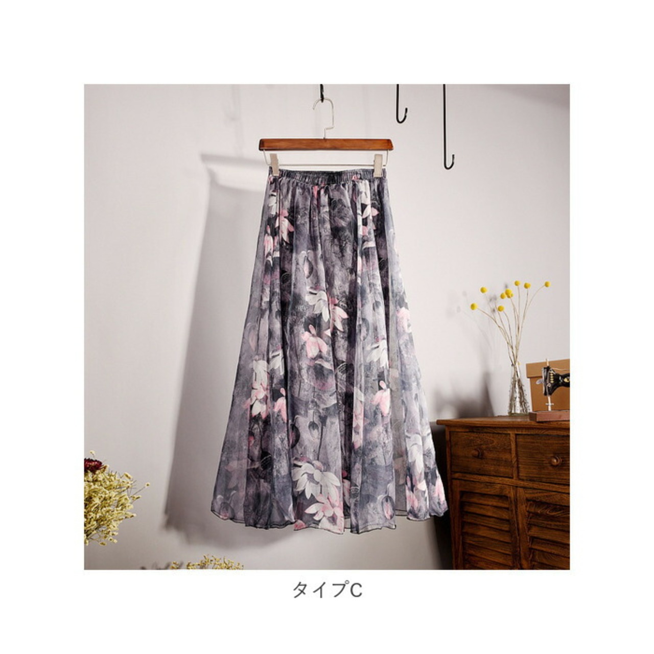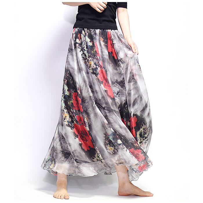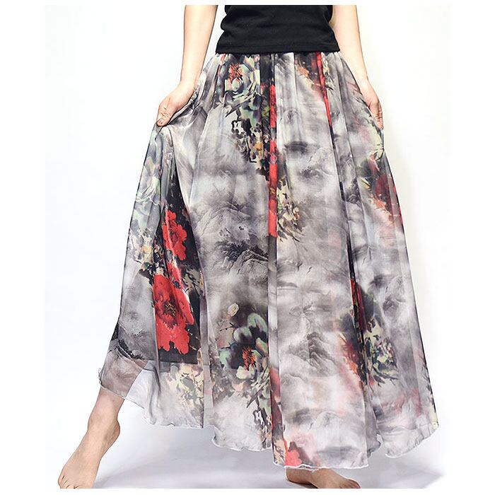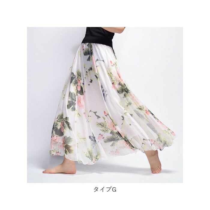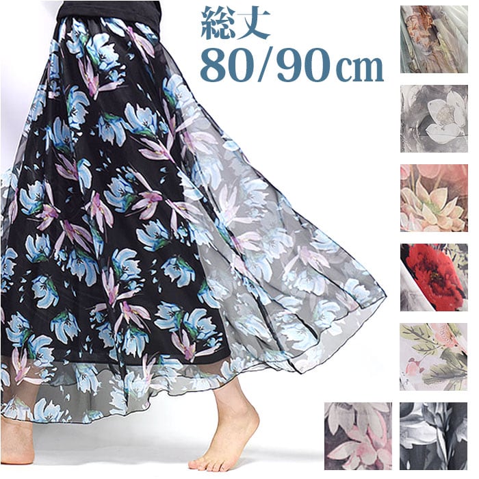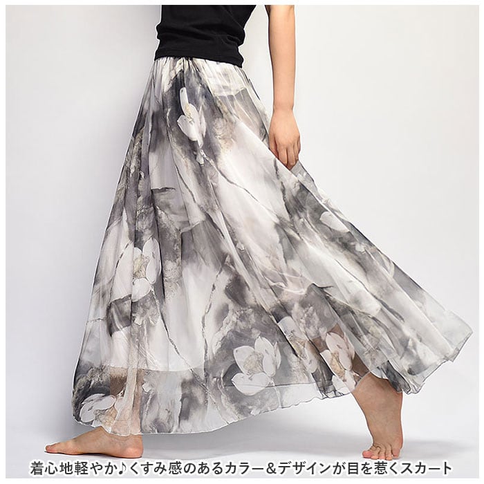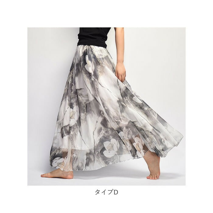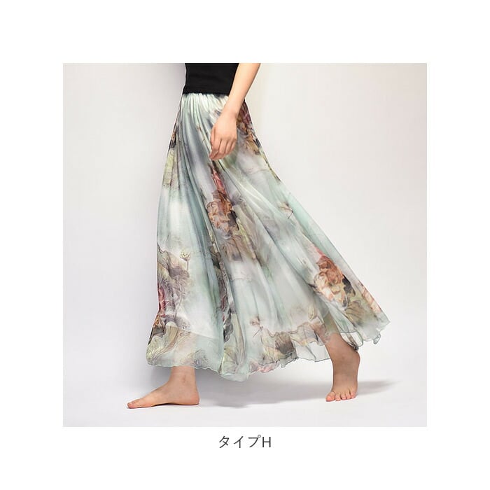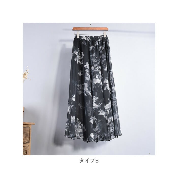 【プリントデザインのシフォンスカート】