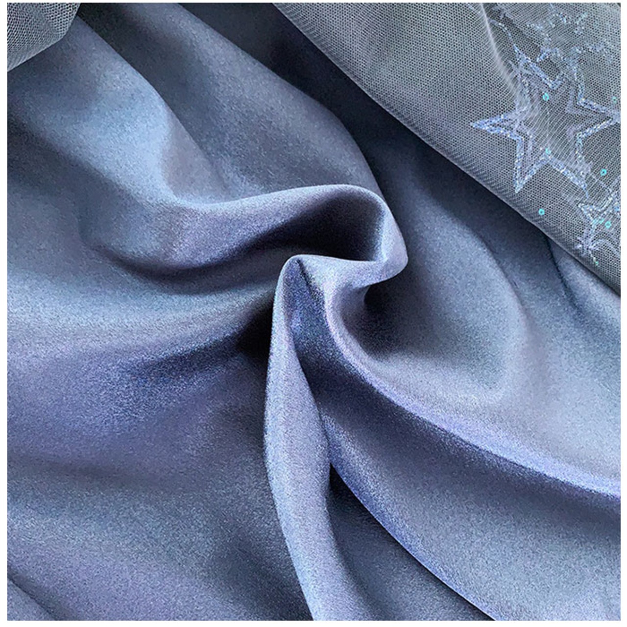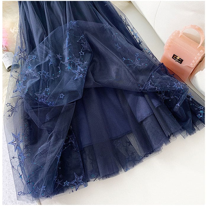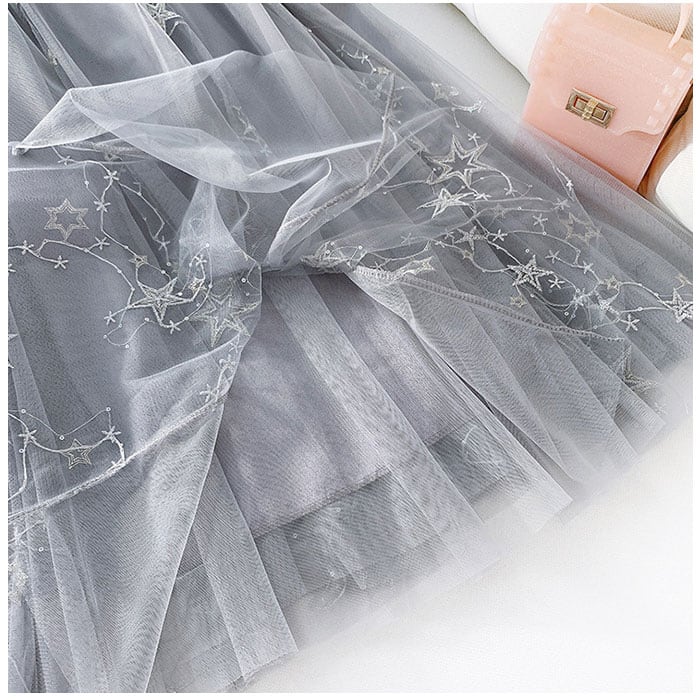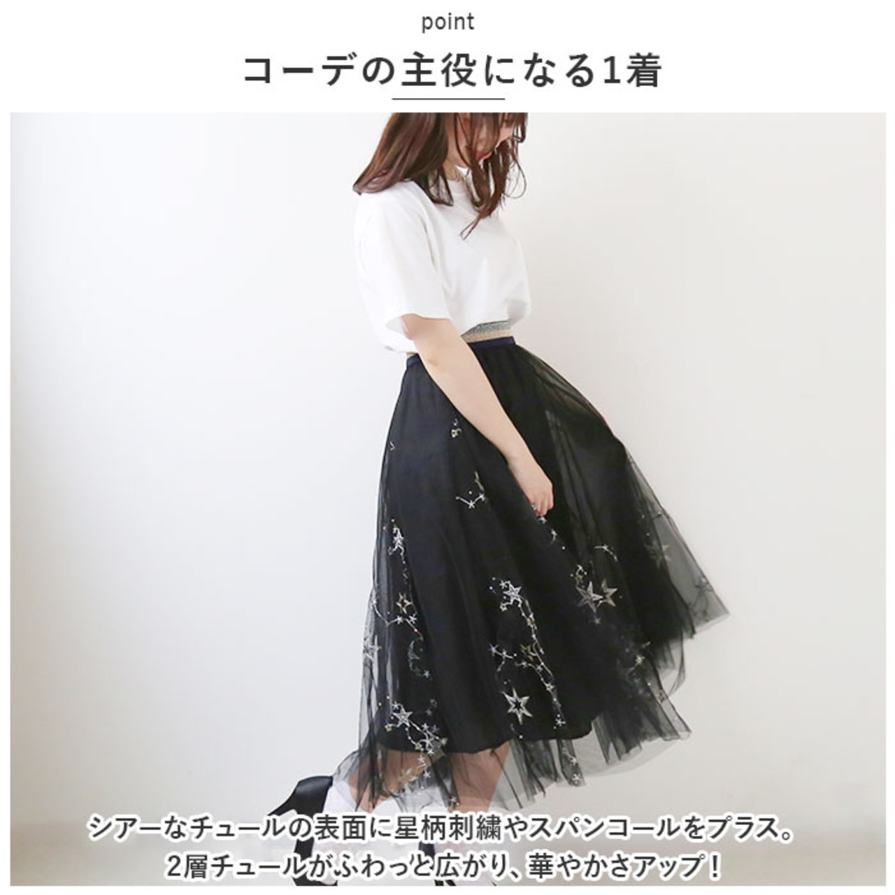 ・シアーなチュールの表面に星柄刺繍やスパンコールをプラス。2層チュールがふわっと広がり、華やかさアップ!