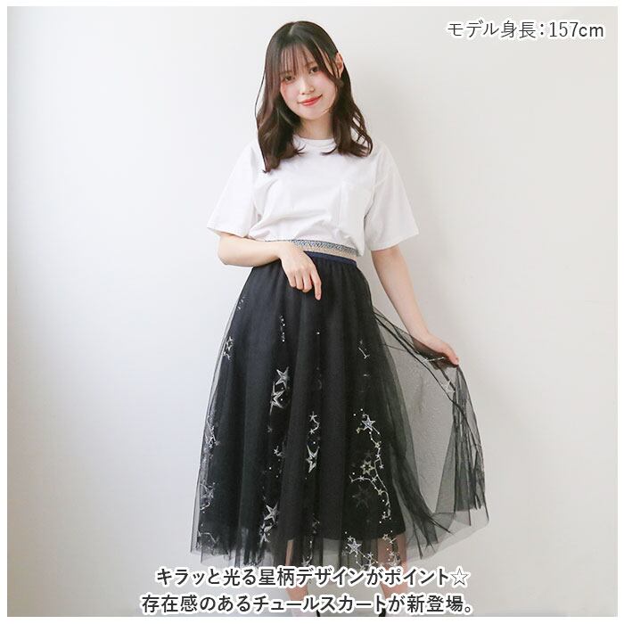 ・キラッと光る星柄デザインがポイント☆存在感のあるチュールスカートが新登場。