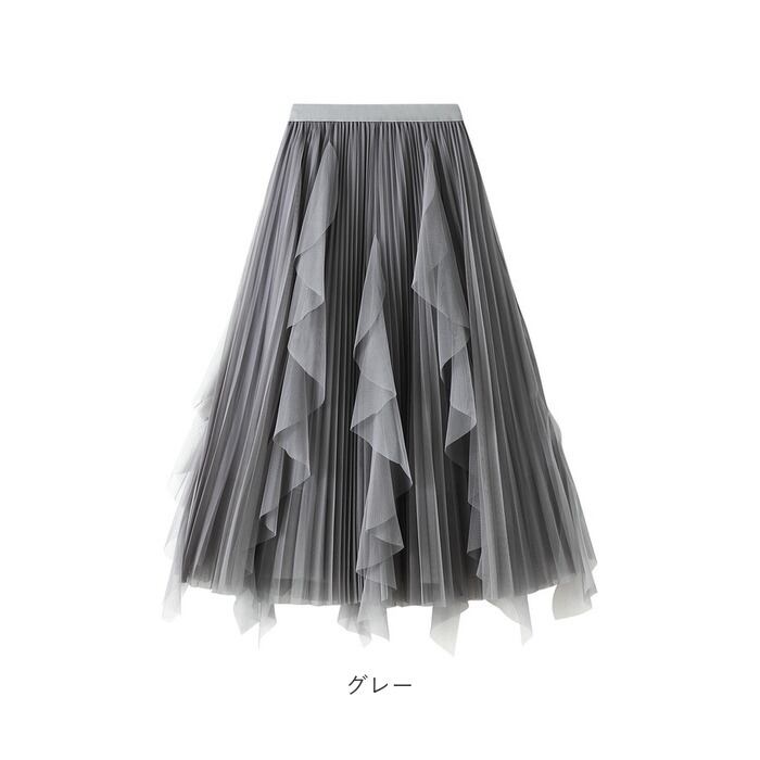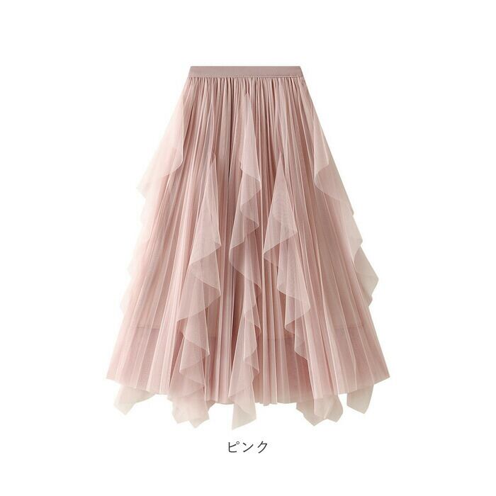 ・段差のあるフリルデザインをプラスしたシアーなチュールが、ふわっと広がる♪シンプルなワンカラーながら、目を惹くアイテム。