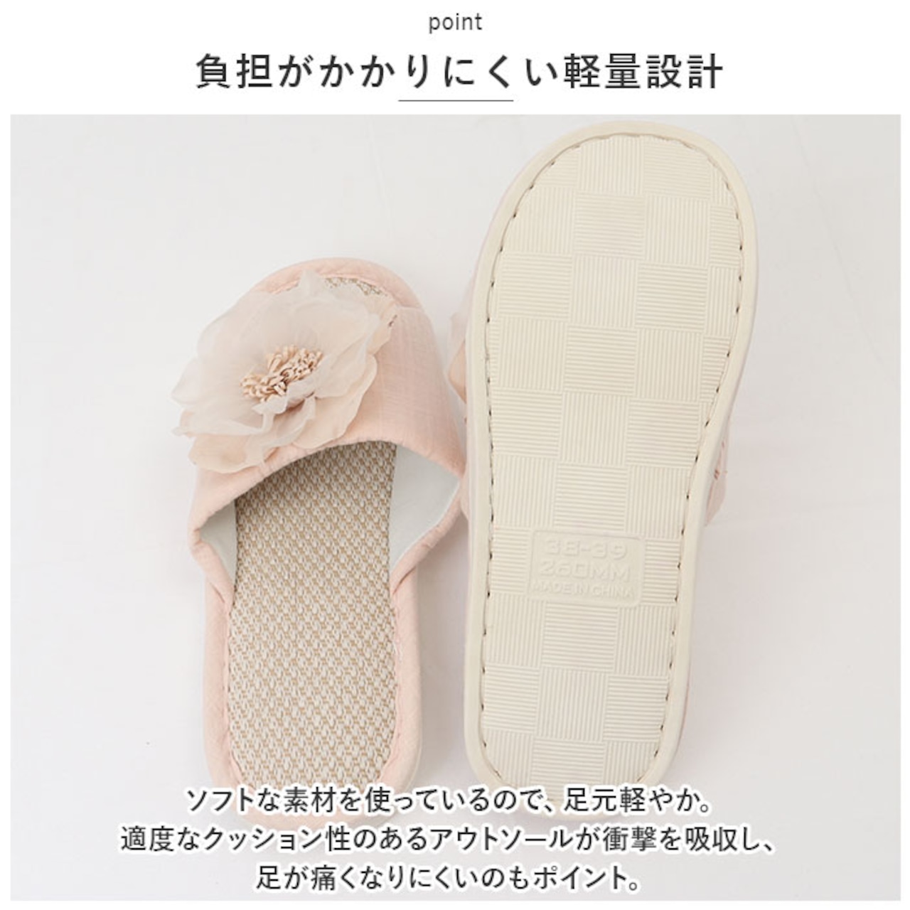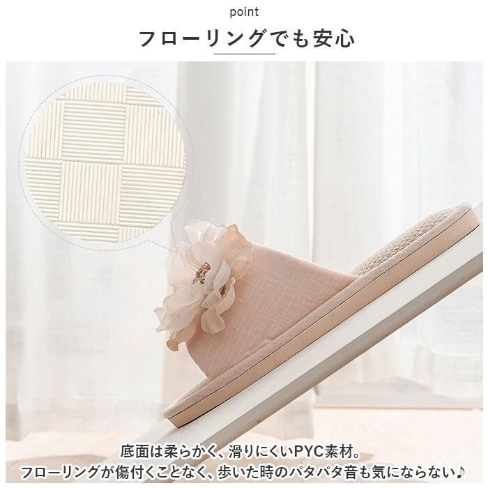 ・底面は柔らかく、滑りにくいPYC素材。フローリングが傷付くことなく、歩いた時のパタパタ音も気にならない♪