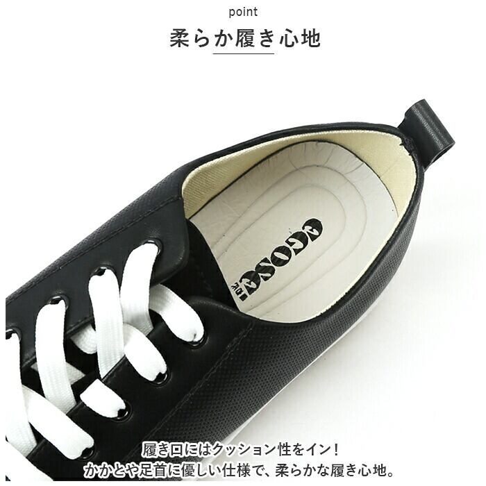 ・履き口にはクッション性をイン!かかとや足首に優しい仕様で、柔らかな履き心地。