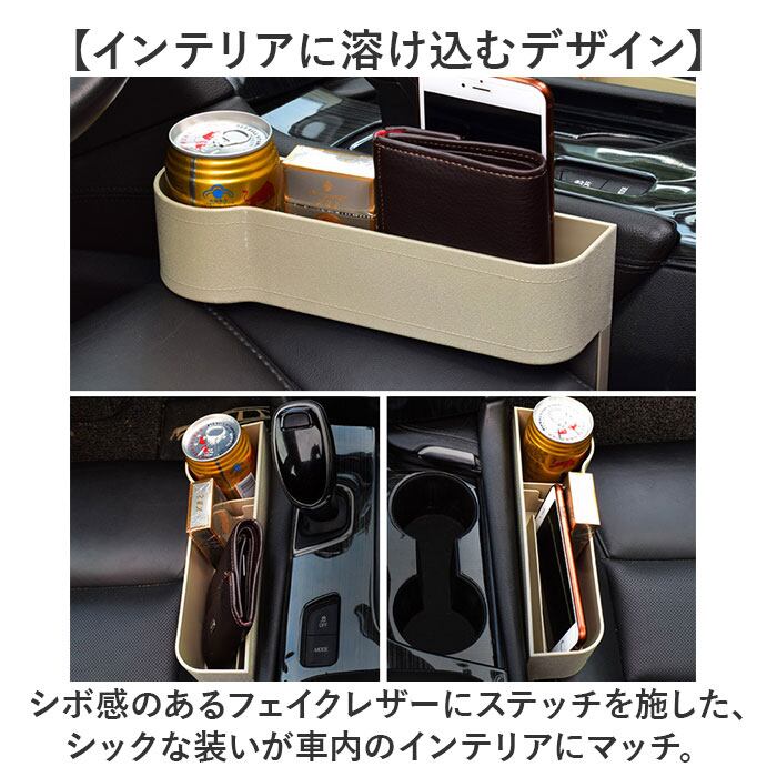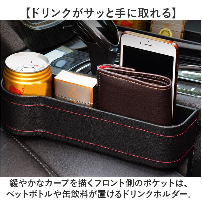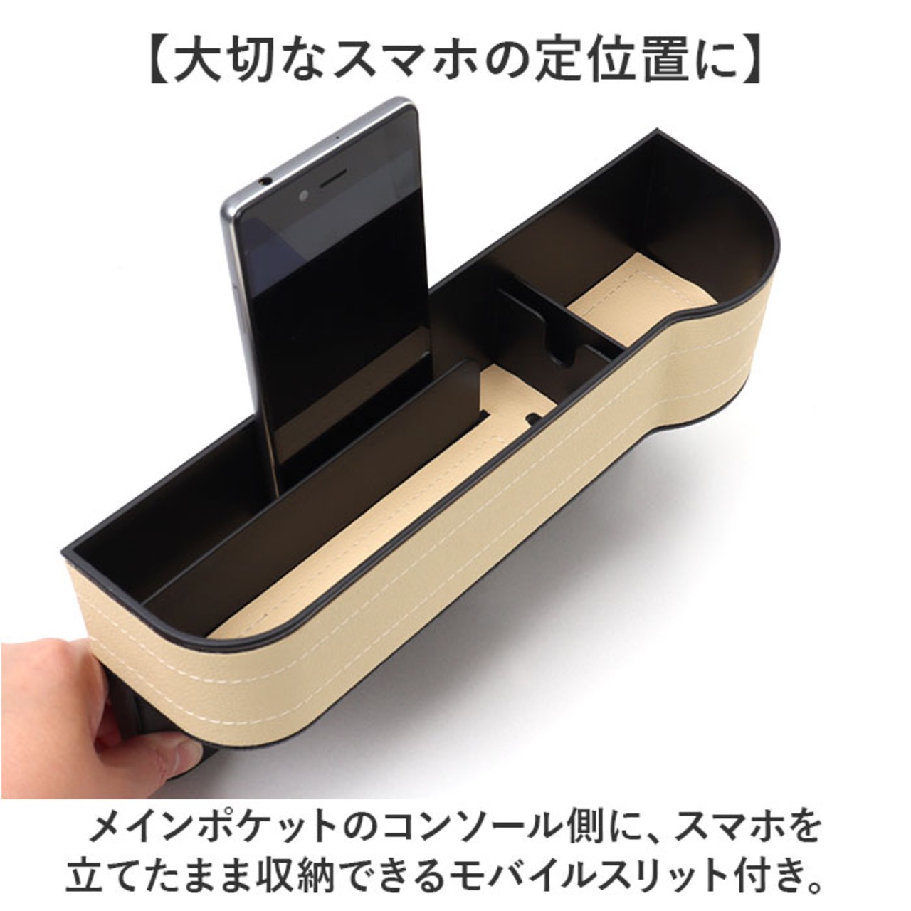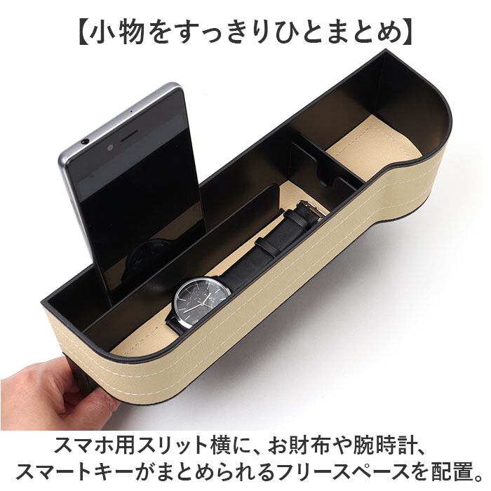 ・座席シートの隙間にしっかりと差し込むことで、シート脇に小物を落とす心配のない安心設計。
