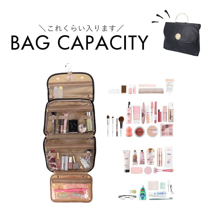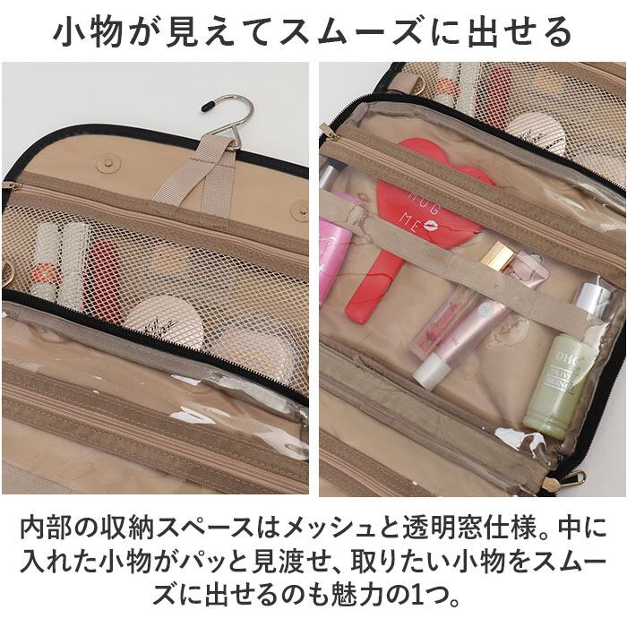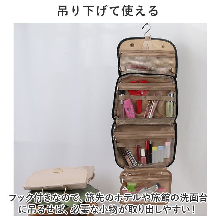 ・フック付きなので、旅先のホテルや旅館の洗面台に吊るせば、必要な小物が取り出しやすい!