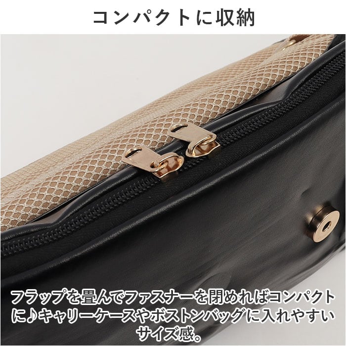 ・フラップを畳んでファスナーを閉めればコンパクトに♪キャリーケースやボストンバッグに入れやすいサイズ感。