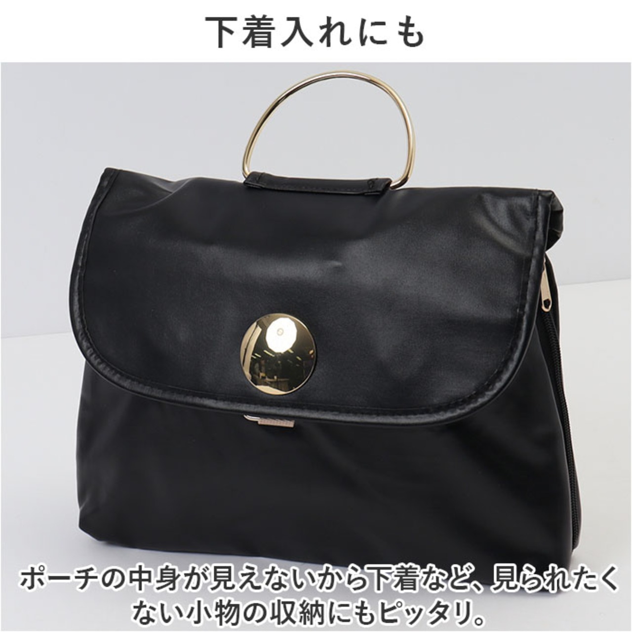 ・ポーチの中身が見えないから下着など、見られたくない小物の収納にもピッタリ。