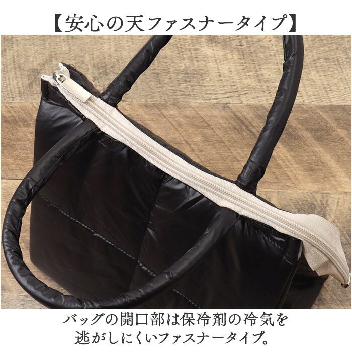 ・バッグの開口部は保冷剤の冷気を逃がしにくいファスナータイプ。