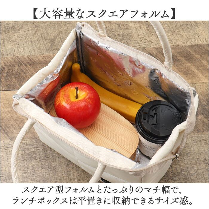 ・スクエア型フォルムとたっぷりのマチ幅で、ランチボックスは平置きに収納できるサイズ感。