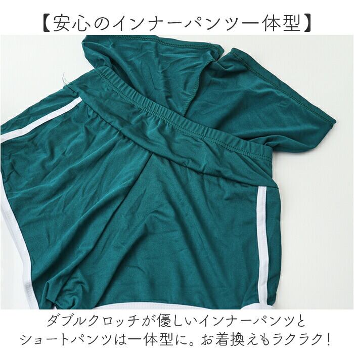 ・ダブルクロッチが優しいインナーパンツとショートパンツは一体型に。お着換えもラクラク!