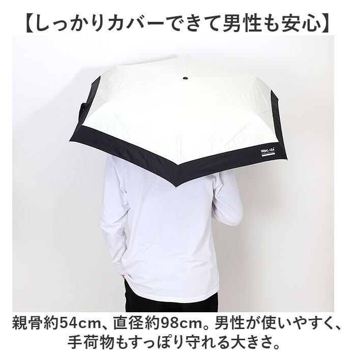 ・親骨約54cm、直径約98cm。男性が使いやすく、手荷物もすっぽり守れる大きさ。