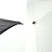 ・傘生地をまとめるバンドは、面ファスナー式。たたむ時も手間取らず、ひとまとめ。