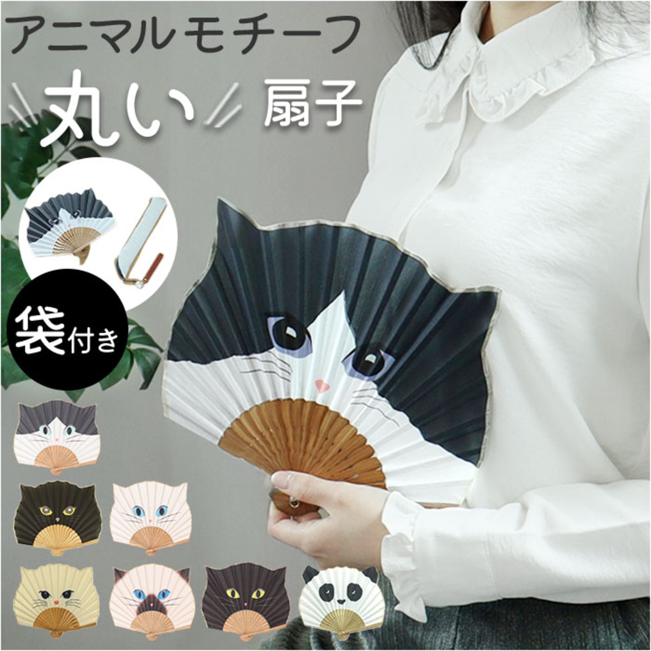 ・周りの扇子とひと味違う猫やパンダなど、アニマルフェイスをモチーフにしたデザイン◎