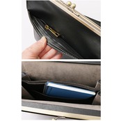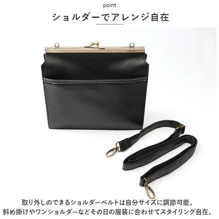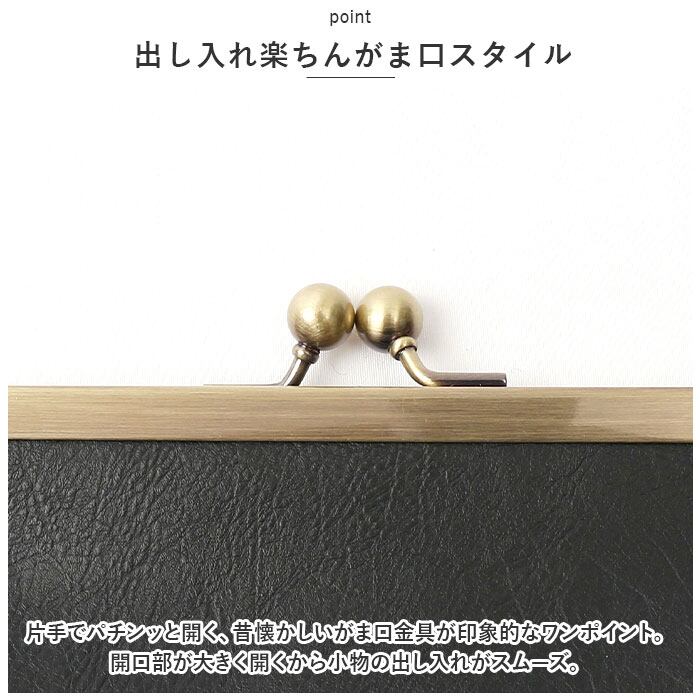 ・片手でパチンッと開く、昔懐かしいがま口金具が印象的なワンポイント。開口部が大きく開くから小物の出し入れがスムーズ。