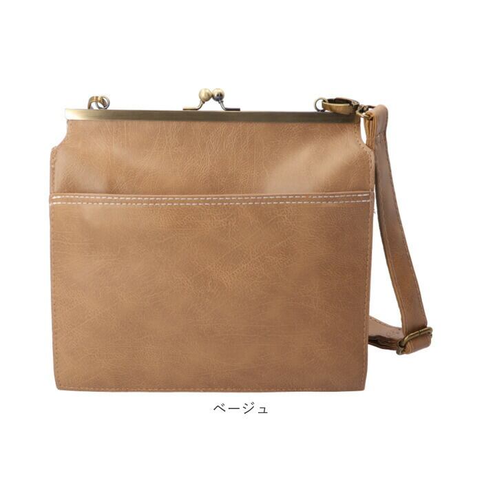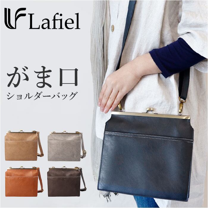 Lafiel ラフィール ナチュラル合皮 がま口ショルダーバッグ