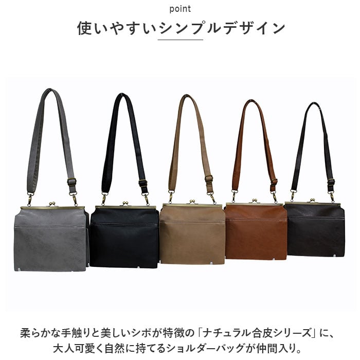 ・柔らかな手触りと美しいシボが特徴の「ナチュラル合皮シリーズ」に、大人可愛く自然に持てるショルダーバッグが仲間入り。