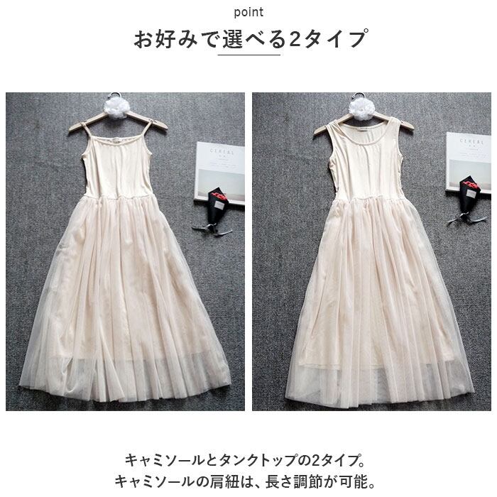 ・キャミソールとタンクトップの2タイプ。キャミソールの肩紐は、長さ調節が可能。