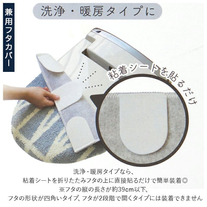 ・洗浄・暖房タイプなら、粘着シートを折りたたみフタの上に直接貼るだけで簡単装着◎