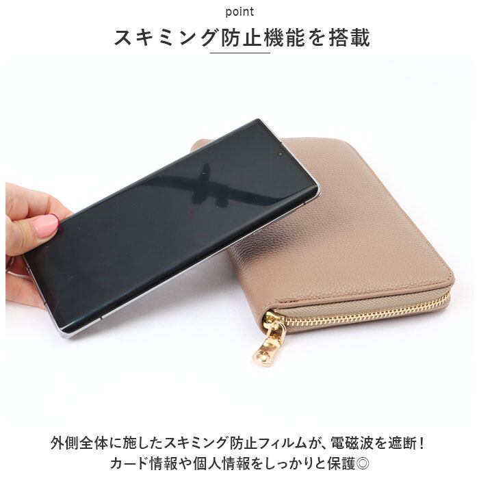 ・外側全体に施したスキミング防止フィルムが、電磁波を遮断!カード情報や個人情報をしっかりと保護◎