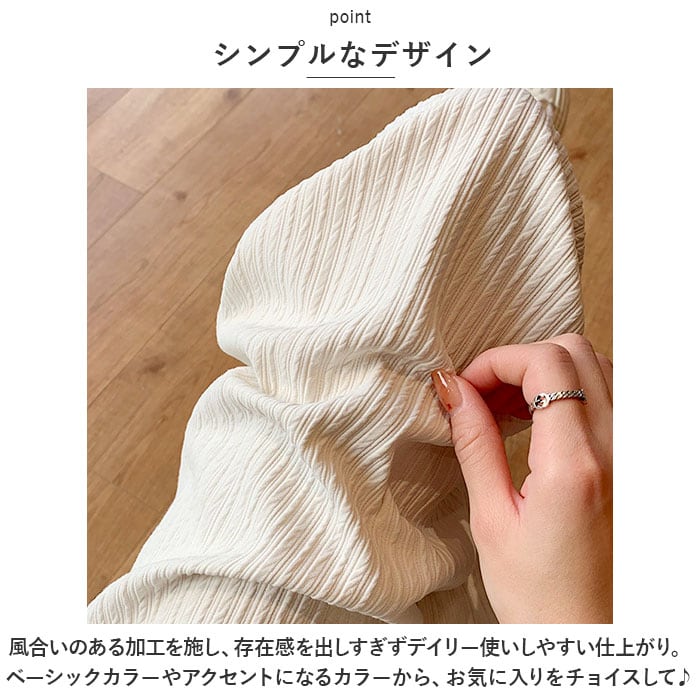 ・ゆったり感のあるワイドタイプ。体のラインを拾いにくく、気になる部分をふんわりカバー◎