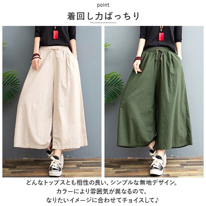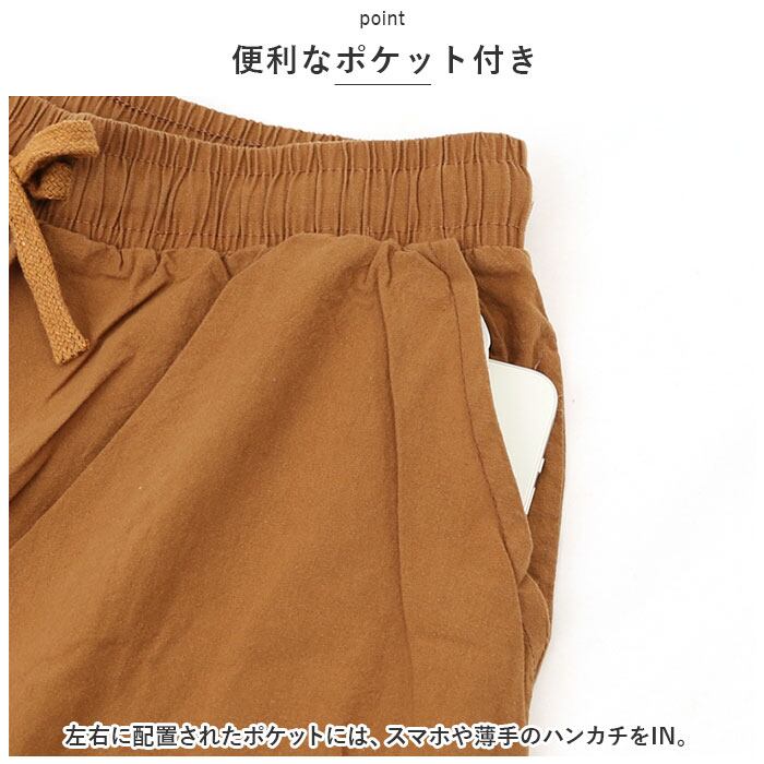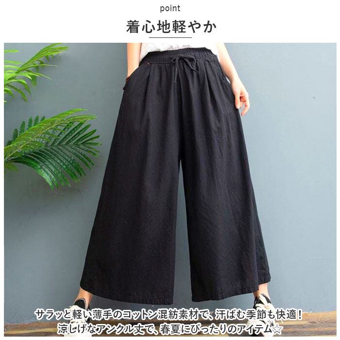 ・サラッと軽い薄手のコットン混紡素材で、汗ばむ季節も快適!涼しげなアンクル丈で、春夏にぴったりのアイテム☆