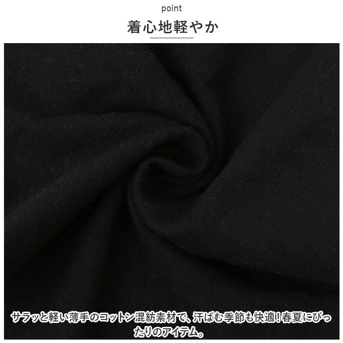 ・サラッと軽い薄手のコットン混紡素材で、汗ばむ季節も快適!春夏にぴったりのアイテム。