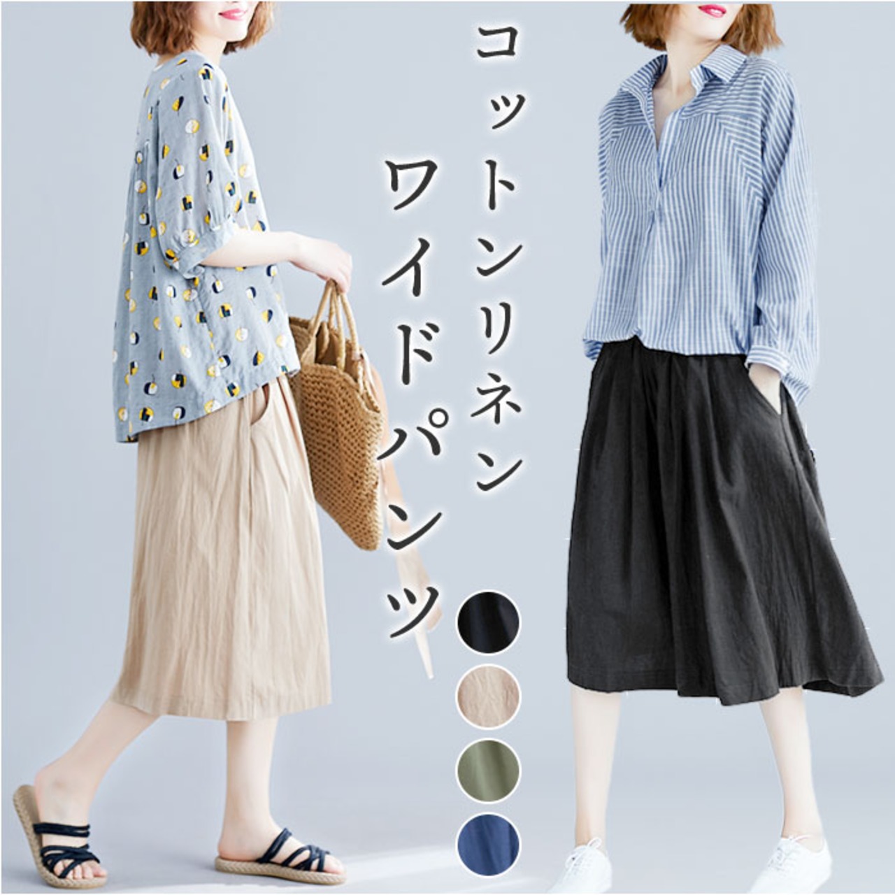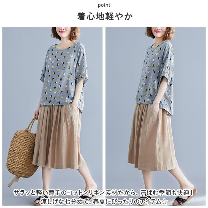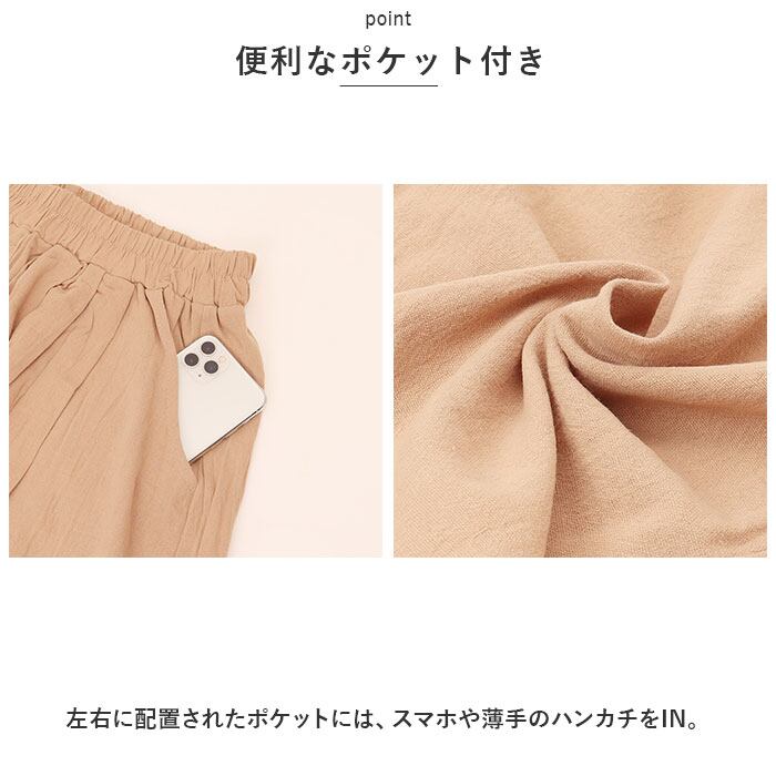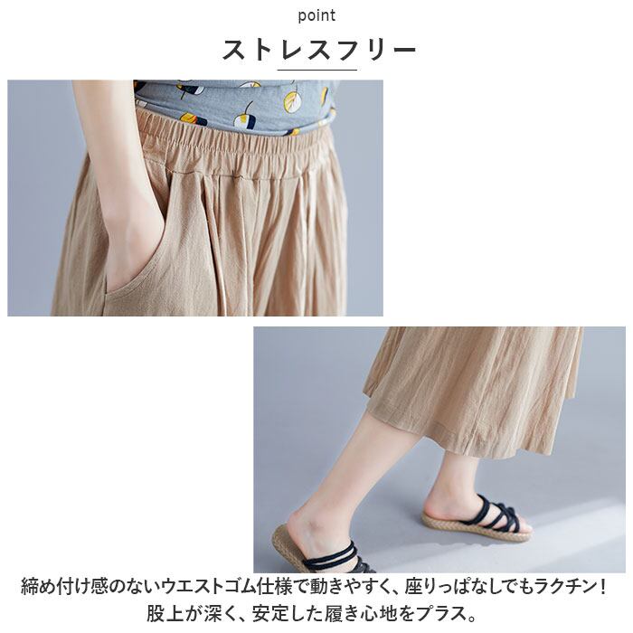 ・サラッと軽い薄手のコットンリネン素材だから、汗ばむ季節も快適!涼しげな七分丈で、春夏にぴったりのアイテム☆