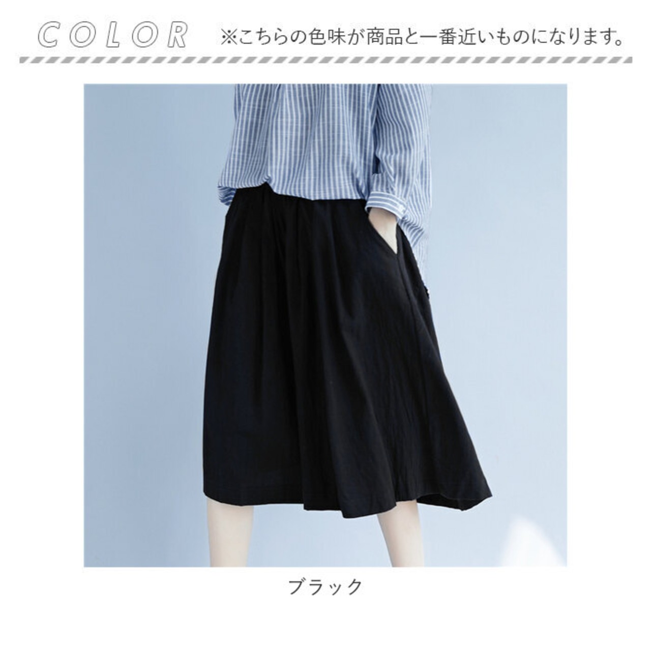 ・どんなトップスとも相性の良い、シンプルな無地デザイン。カラーにより雰囲気が異なるので、なりたいイメージに合わせてチョイスして♪