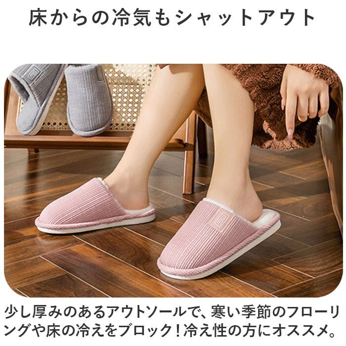 ・少し厚みのあるアウトソールで、寒い季節のフローリングや床の冷えをブロック!冷え性の方にオススメ。