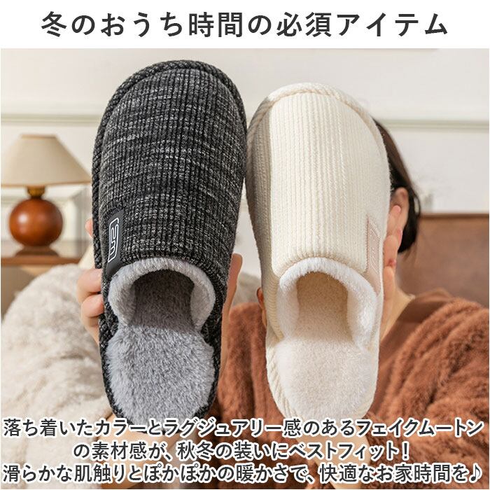 ・もこもこボリュームのあるボアが、足先まで優しく包み込む。履いた瞬間から暖かい♪季節に合わせてスリッパも衣替え。