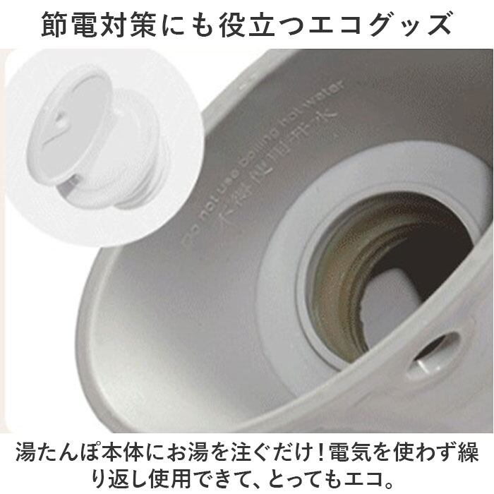 ・湯たんぽ本体にお湯を注ぐだけ!電気を使わず繰り返し使用できて、とってもエコ。