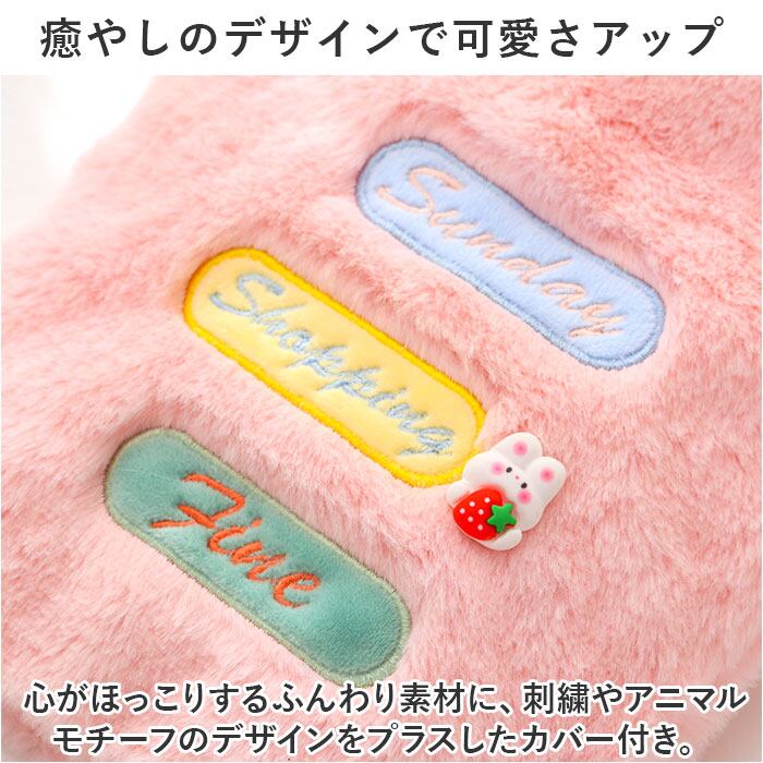 ・心がほっこりするふんわり素材に、刺繍やアニマルモチーフのデザインをプラスしたカバー付き。