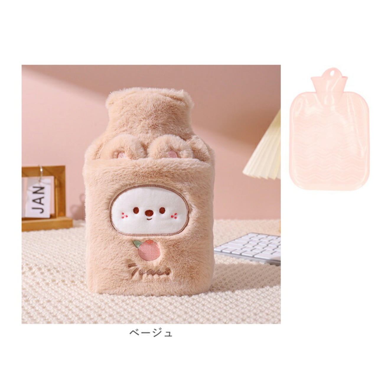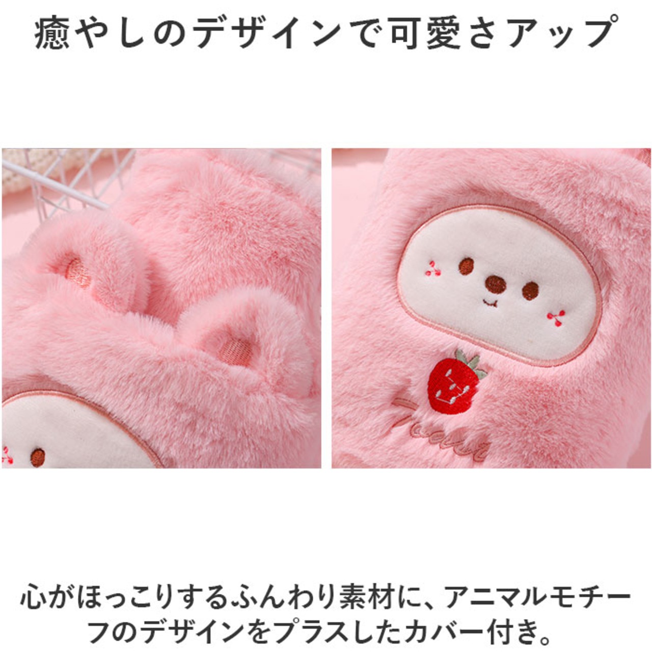 ・心がほっこりするふんわり素材に、アニマルモチーフのデザインをプラスしたカバー付き。