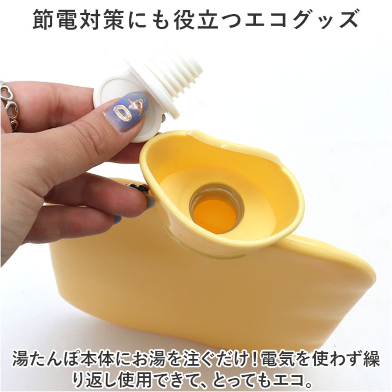 ・湯たんぽ本体にお湯を注ぐだけ!電気を使わず繰り返し使用できて、とってもエコ。