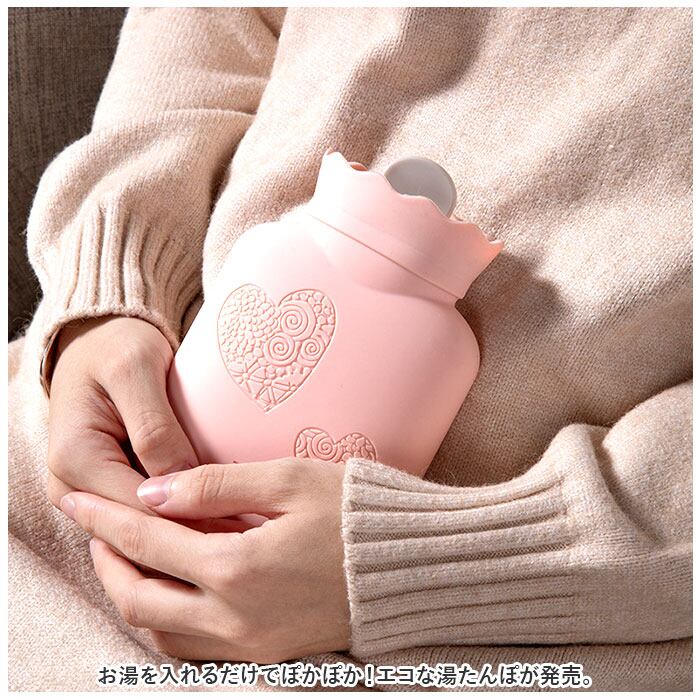 湯たんぽ シリコン 通販 ゆたんぽ 湯タンポ レンジ 小さめ ミニ ボトル カバー付き かわいい 可愛い 340ml 柔らかい ソフト 防寒グッズ 冷え対策 お腹 あったか 保温 ハート アイシング 氷のう おしゃれ