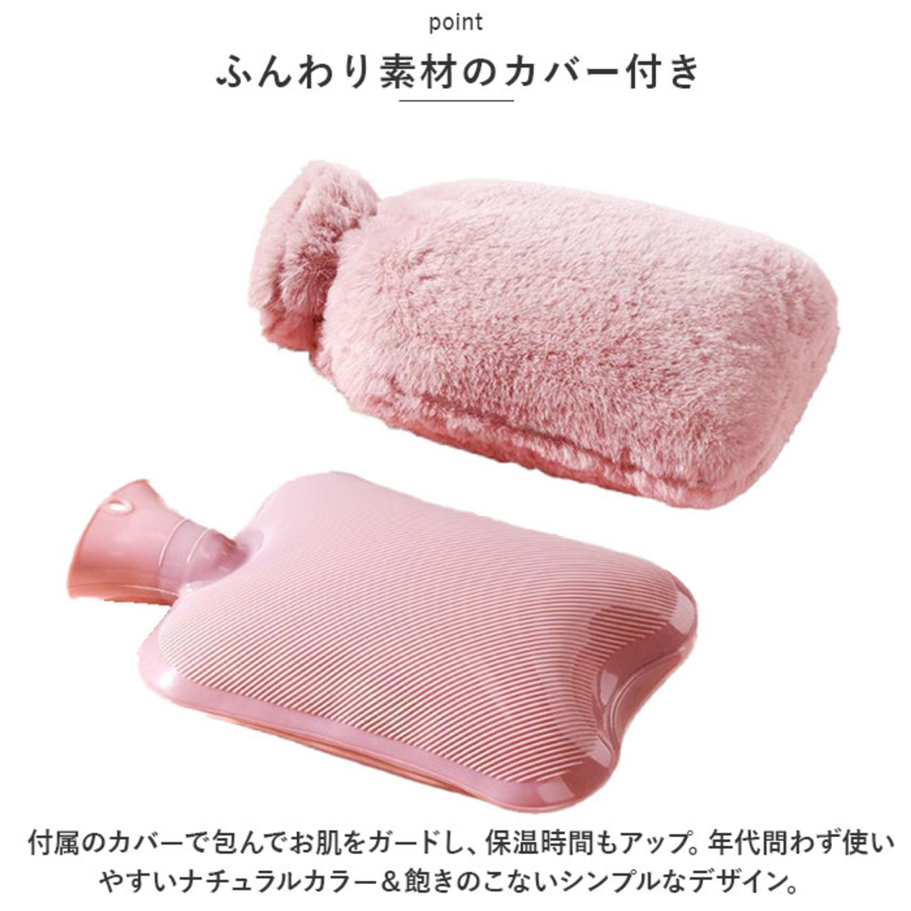 ・付属のカバーで包んでお肌をガードし、保温時間もアップ。年代問わず使いやすいナチュラルカラー&飽きのこないシンプルなデザイン。