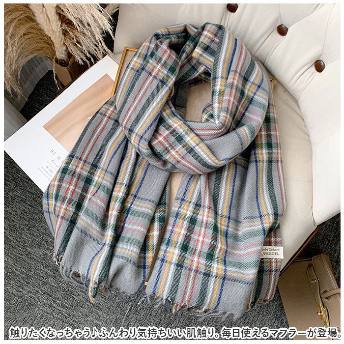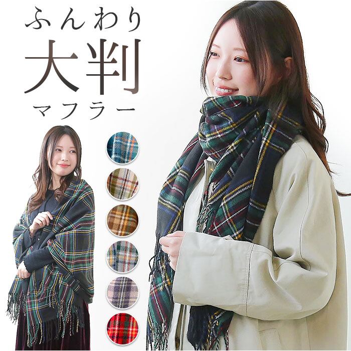 マフラー チェック レディース 通販 ストール 大判 ショール スカーフ 秋冬 首巻き 肩掛け 巻き物 羽織り 大判ストール おしゃれ 学生 厚手 フリンジ シンプル 大人かわいい 可愛い 通勤 通学 防寒 あったか 暖かい レディースマフラー ファッション小物