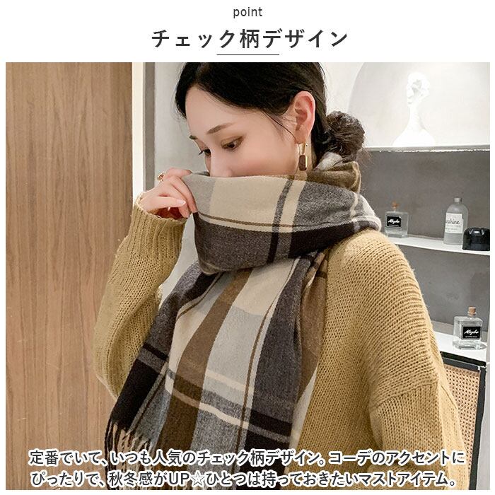 マフラー チェック レディース 通販 ストール 大判 ショール スカーフ 秋冬 首巻き 肩掛け 巻き物 羽織り 大判ストール おしゃれ 学生 フリンジ シンプル 大人可愛い かわいい 通勤 通学 防寒 あったか 暖かい レディースマフラー ファッション小物