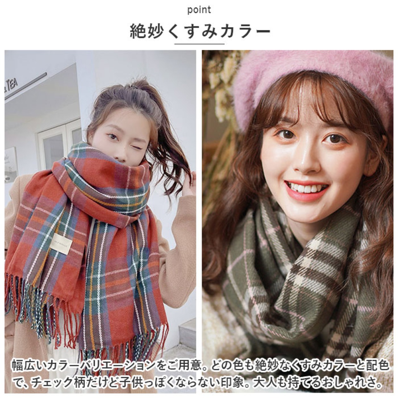・定番でいて、いつも人気のチェック柄デザイン。コーデのアクセントにぴったりで、秋冬感がUP☆ひとつは持っておきたいマストアイテム。