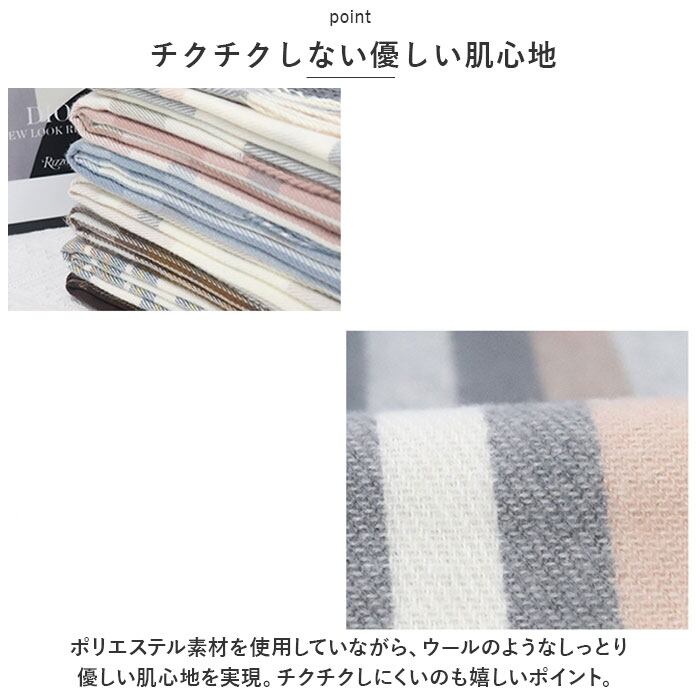 ・ポリエステル素材を使用していながら、ウールのようなしっとり優しい肌心地を実現。チクチクしにくいのも嬉しいポイント。