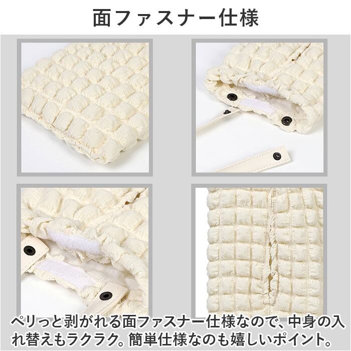 ・ペリっと剥がれる面ファスナー仕様なので、中身の入れ替えもラクラク。簡単仕様なのも嬉しいポイント。