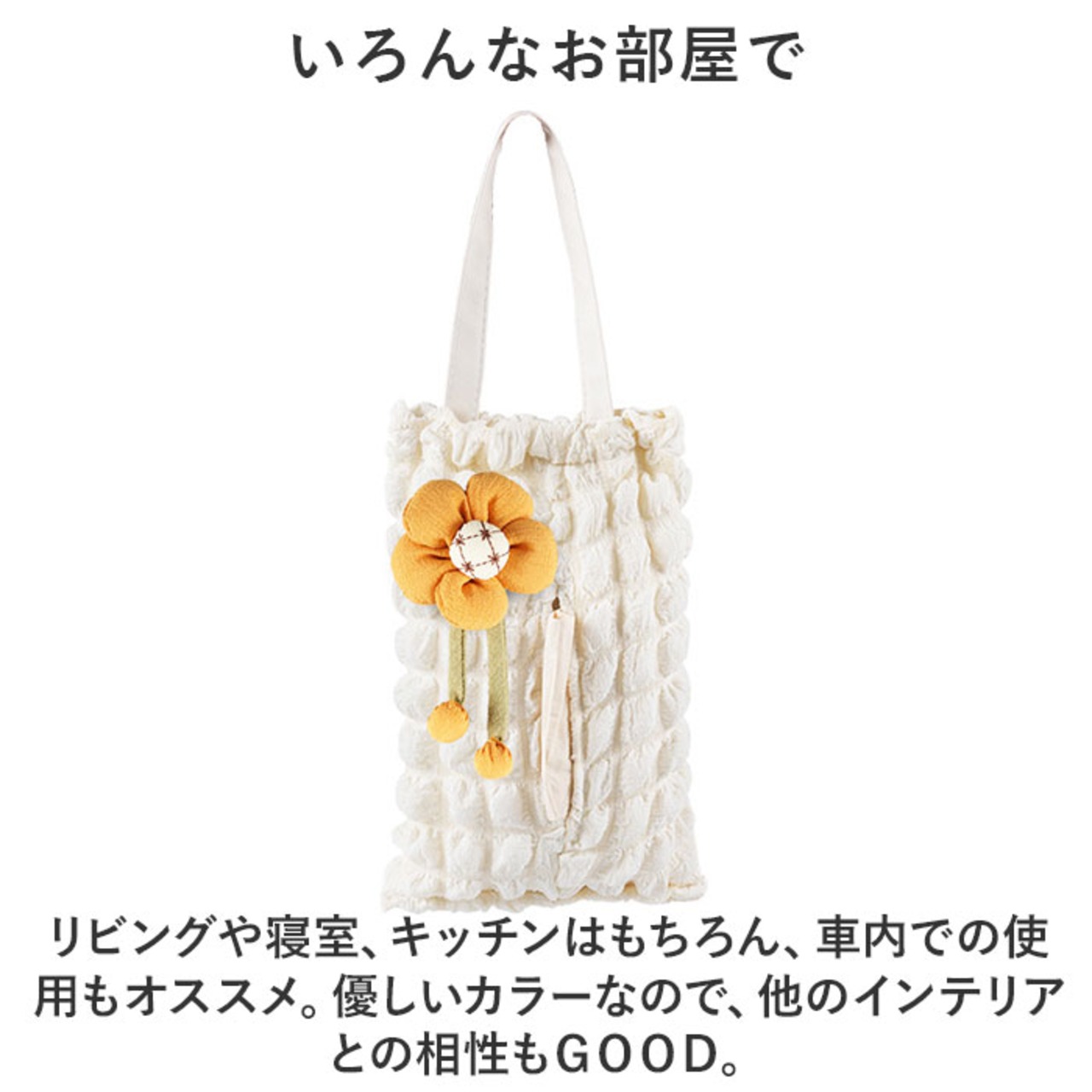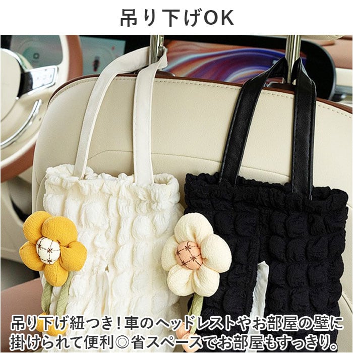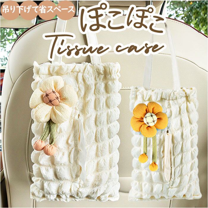 ティッシュケース 吊り下げ 通販 ティッシュカバー ティッシュホルダー ティッシュバッグ ティッシュ ケース カバー ボックス 壁掛け コンパクト 持ち運び 省スペース 軽量 軽い フラワー 花 ぽこぽこ ポコポコ かわいい 可愛い おしゃれ 部屋 車