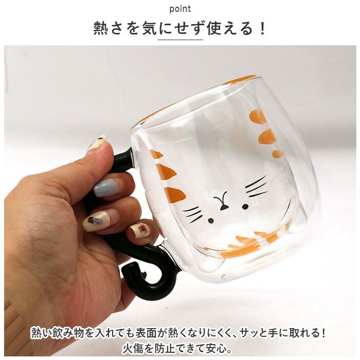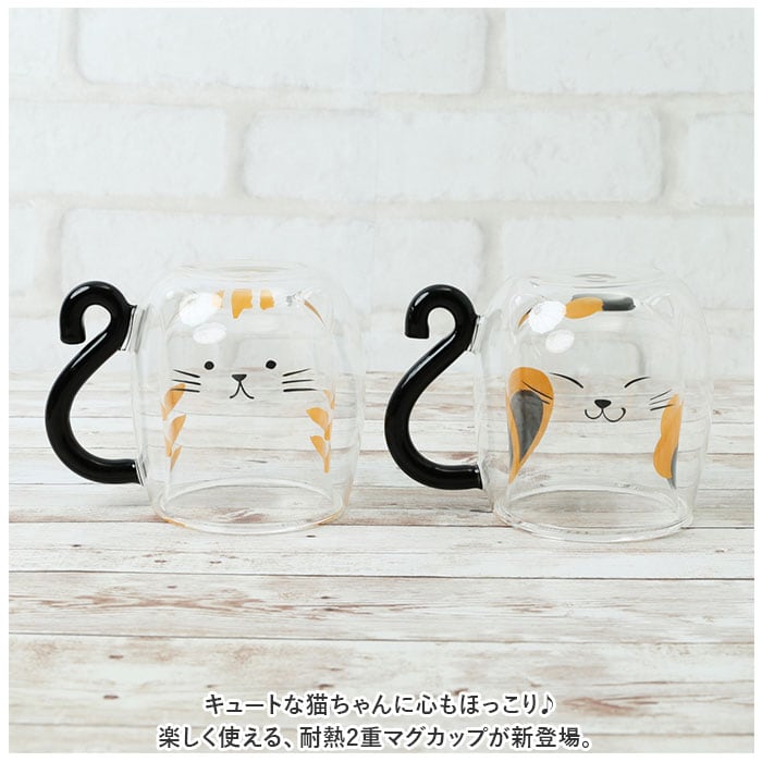 ・キュートな猫ちゃんに心もほっこり♪楽しく使える、耐熱2重マグカップが新登場。