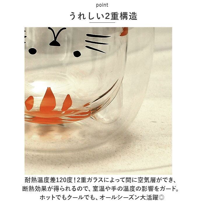 ・耐熱温度差120度!2重ガラスによって間に空気層ができ、断熱効果が得られるので、室温や手の温度の影響をガード。ホットでもクールでも、オールシーズン大活躍◎