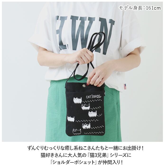 ・ずんぐりむっくりな癒し系ねこさんたちと一緒にお出掛け!猫好きさんに大人気の「猫3兄弟」シリーズに「ショルダーポシェット」が仲間入り!
